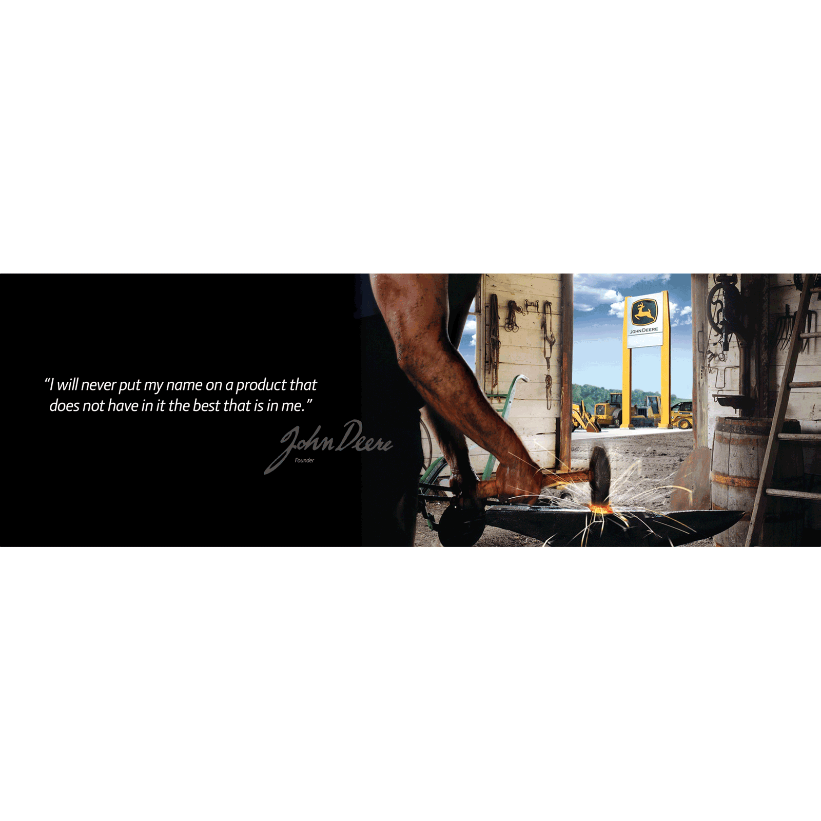 John Deere's famous quote reinforces everything your Deere dealership represents from the products you sell to the service you provide. Set up as 72"w x 24"h - choose your material and finish. Your John Deere brand message is loud and clear.